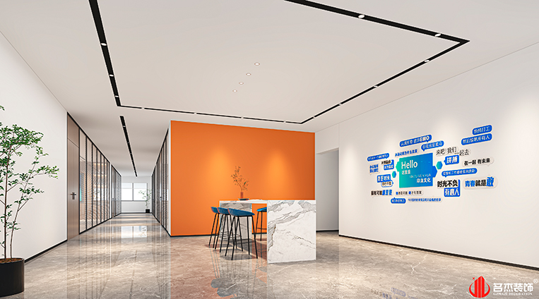 時尚簡約風格為這次的主打風格,同時加入活力橙作為空間的點綴色,讓其空間與市面流行的辦公裝修設(shè)計空間有著明顯的區(qū)別。活力橙的加入也能為空間注入更多的活力元素,使其空間變得更加有趣。#廣州辦公室裝修設(shè)計#