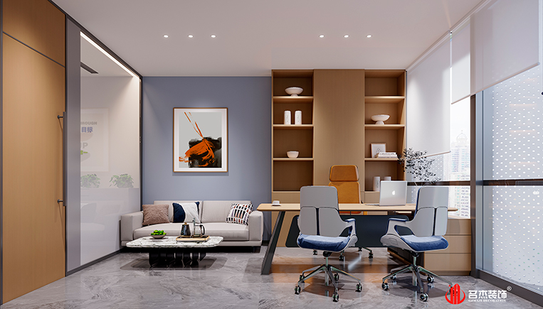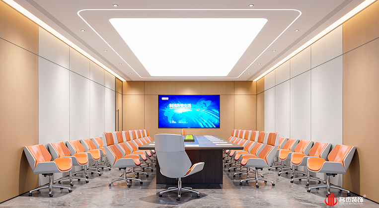 時尚簡約是這次設計的主導風格,但設計師并沒有遵循往常的時尚簡約設計手法,而是大膽結合空間特色,使用金色的作為空間的點綴色,同時,結合碳晶板以及沖孔鋁單板,微空間帶來了更好的視覺搭配。帶有引導線的動線規劃將各個功能區域功能全部發揮出來。空間中時不時出現的撞色設計,也為該空間帶來更多的視覺沖擊感。#廣州辦公室裝修設計公司#