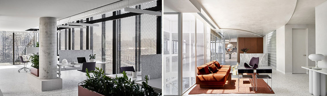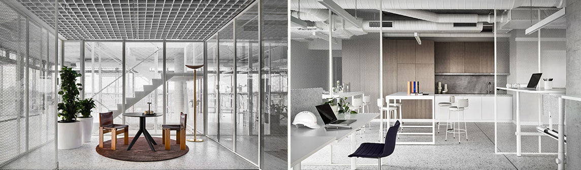 為了傳達公司的誠實和聯(lián)系的精神,工作室選擇實用各種半透明的材料來創(chuàng)建一個開放的平面局部,方便流通和清晰的視線。辦公室有兩層,圍繞著一個完全由穿孔金屬制成的中央樓梯布置。