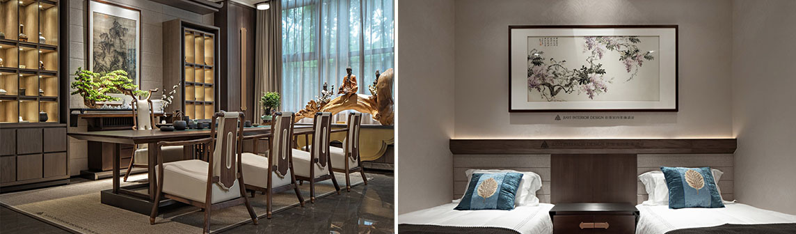 本案寄情于淡然與從容,自在與隨性的生活向往,以古人的情致,生活的哲思,尋找文化、環境和人的依存與平衡,以極具東方韻律的場景和現代的演繹,形成一個藝術和人文風尚兼具的私人空間,期望提供現代人一份悠游于隨歡之樂、生活之趣與藝術之美的深刻體驗之所。
