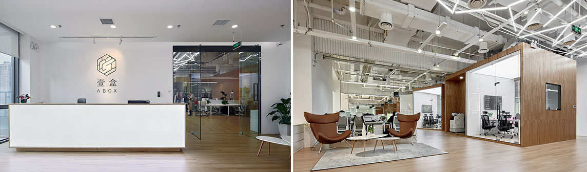 “Abox壹盒”為目前國內(nèi)最大的訂閱制搭配平臺。平臺將搭配好的服飾裝于“壹盒”,寄送給訂購的客戶。辦公室原建筑平面為分隔式辦公,里面布滿柱網(wǎng)。我們將隔斷打開,把遮擋視線的柱子分別藏于一個個盒子當(dāng)中。盒子辦公室裝修設(shè)計內(nèi)部為會議室,電話間,洽談室,展示廳等功能。盒子之間形成的半圍合空間又提供了豐富的公共交流場所,如站立式辦公,吧臺,小會議桌,打印,無人售賣等。